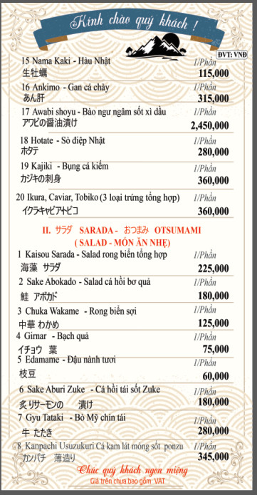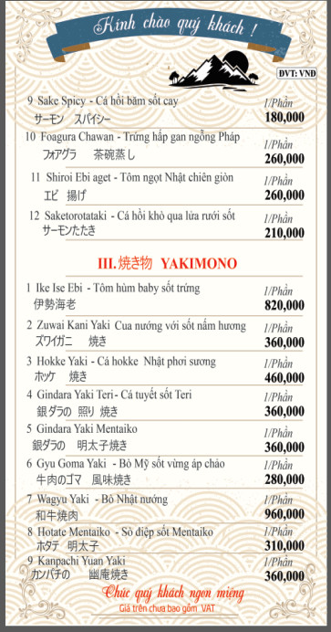 THỰC ĐƠN MÓN NHẬT